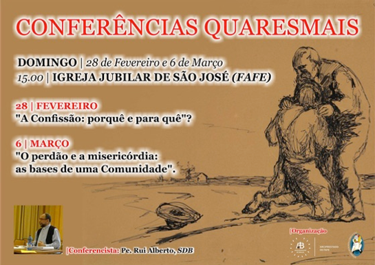 “A Confissão: porquê e para quê?” é o tema da primeira conferência, sendo a segunda intitulada “O perdão e a misericórdia: as bases de uma Comunidade”. O conferencista é o Pe. Rui Alberto, sacerdote salesiano.